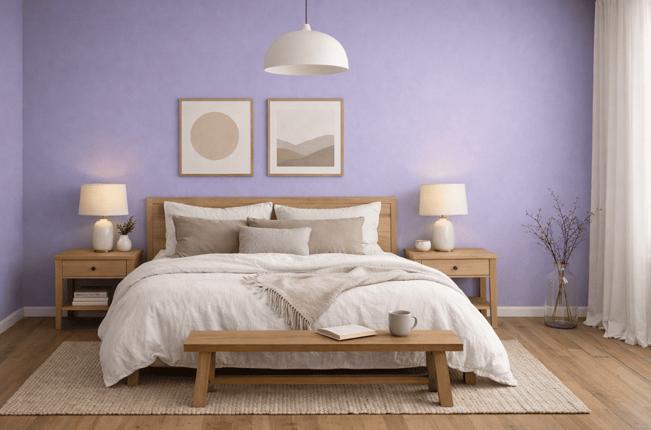 Jika Anda mencari warna cat untuk kamar tidur yang berbeda namun tetap elegan, lavender bisa menjadi pilihan menarik.